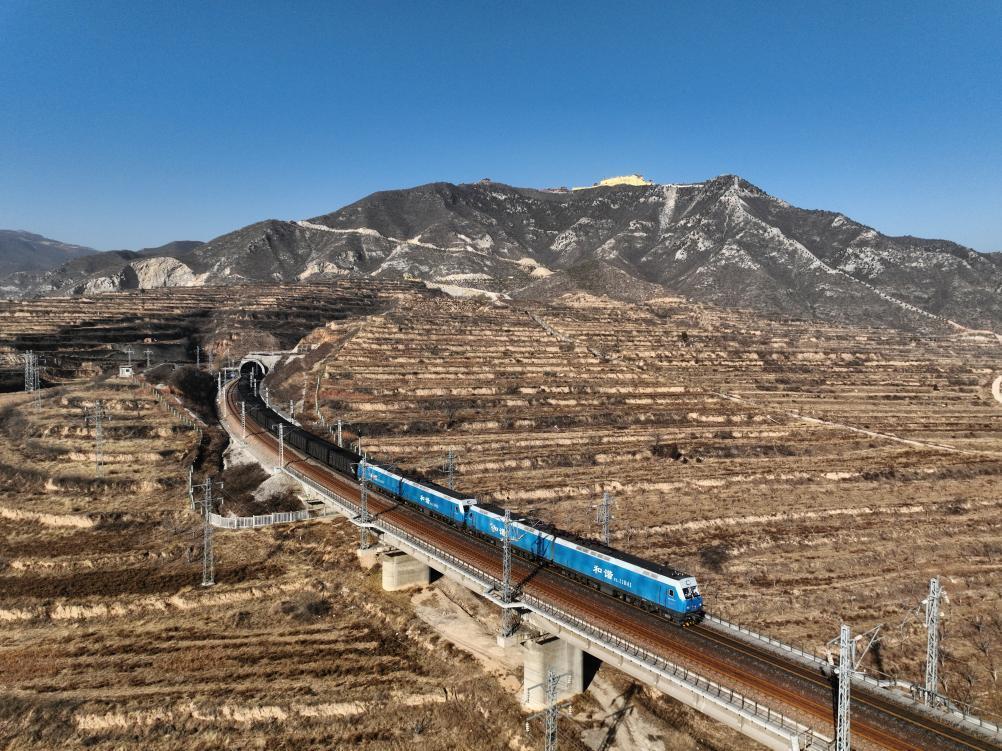 春运期间,重载列车在瓦日线上驰骋,为华东沿海港口及能源需求腹地运送煤炭等能源物资。 新华社发(张睿摄)